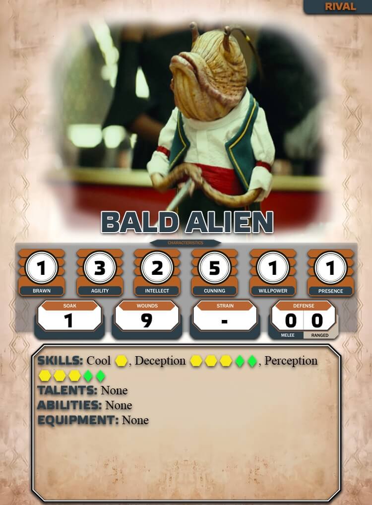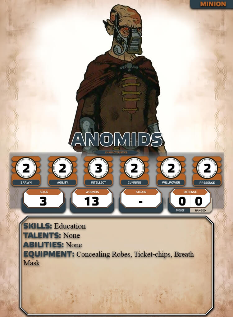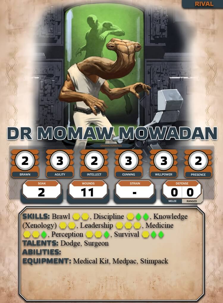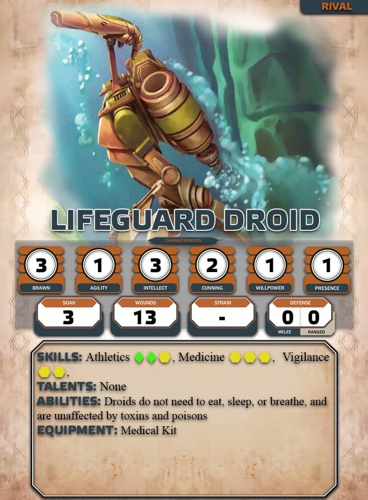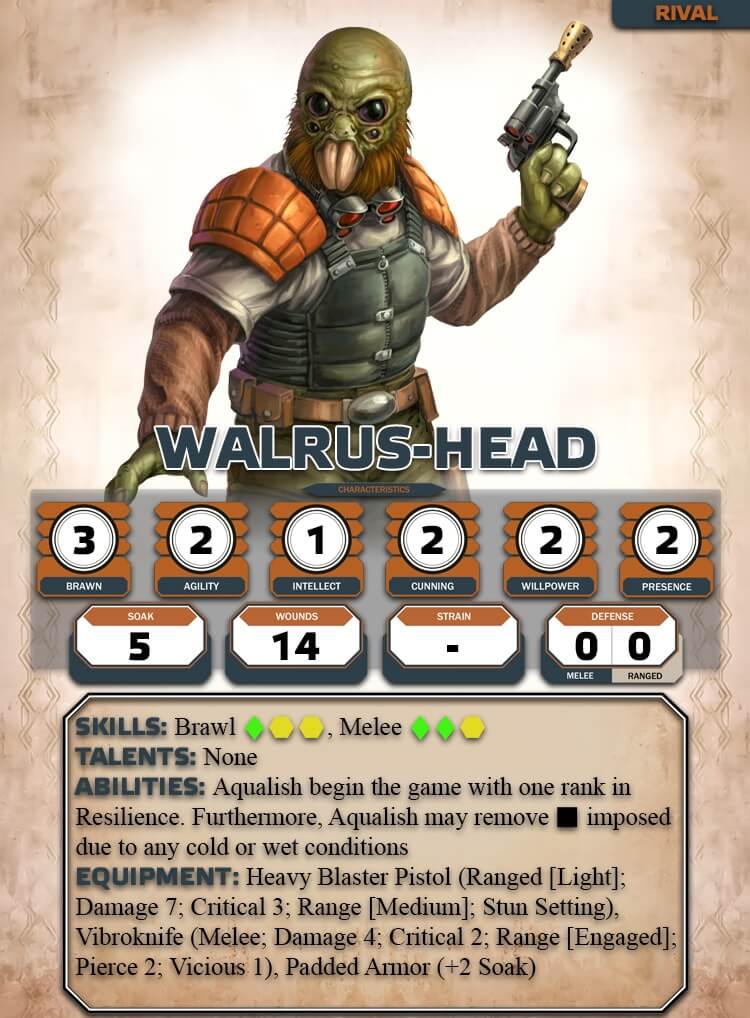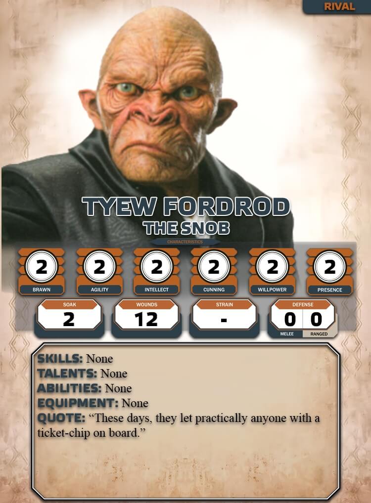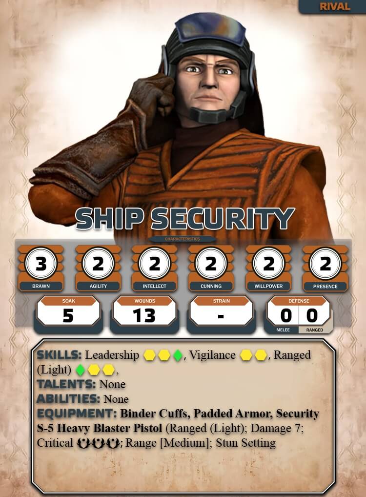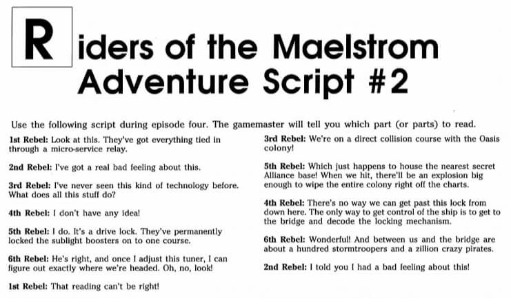 In Riders of the Maelstrom: Act 1: Escape from Aris our HEROES start the adventure In Media Res (Latin for “In the Middle of Things”) Our Heroes are being chased across a residential platform. They are on foot fleeing stormtroopers in the tropical rain forest planet of Aris. The Game Master can explain that upon returning from their mission on Questal, General Dravits Draven of Rebel Intelligence received a transmission from an asset known as Dagger. They were dispatched to Aris to infiltrate a secret meeting between two Imperial Moffs. However, things quickly fell apart when upon arrival one of the Rebel Agents talked a port forman into loaning him 25 credits only to pay the man 25 credits as a tip. This enraged the forman resulting in him calling the Imperials. Then when questioned by the Stormtroopers one of the Rebel Agents smarted off stating they were Imperial Boot Inspectors.