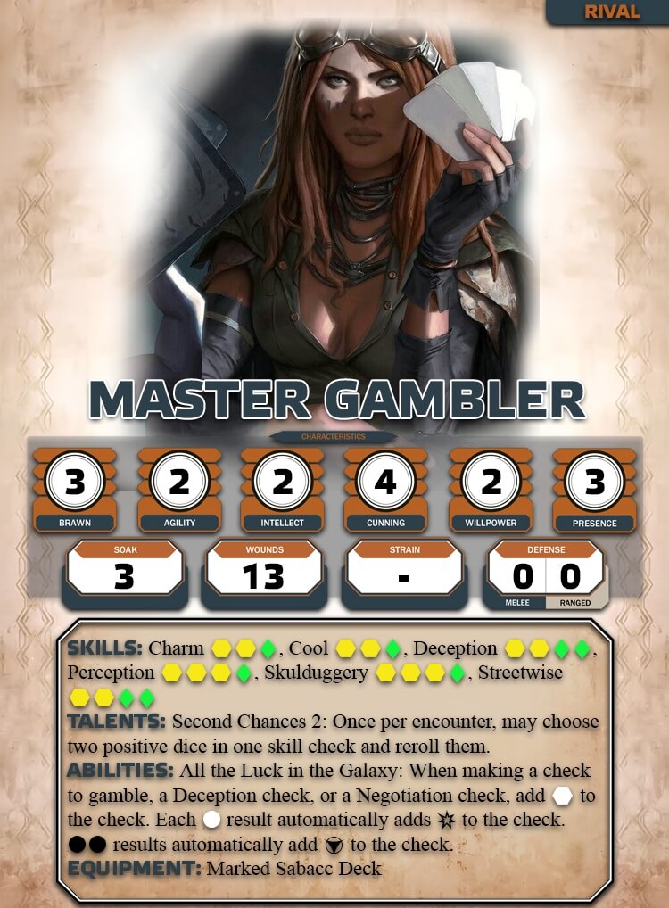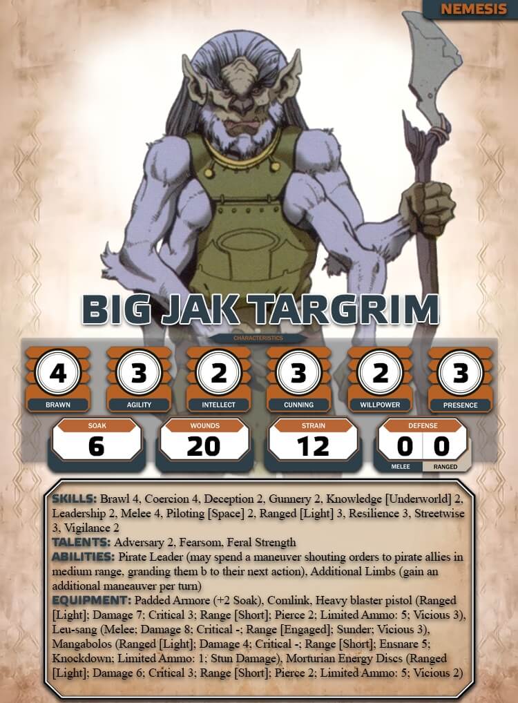 The Partisans: In Episode Five: The Last Chance have the Rebel Base located on Oasis be under the control of Saw Gerrera and his Partisans. Saw Gerrera has lead his people to Oasis due to its location in the Maelstrom. He is following rumors of the Death Star Project in the Kessel System which is also a part of the Maelstrom. Enfys Nest is also here with the Cloud Riders. During the Space Battle Enfys Nest will at the last possible moment board the Kuari Princess to stop the pirates. If the PCs fail to overthrow the pirates and the ship is going to crash the GM can have Enfys Nest save the day in order to ensure the PCs survive.