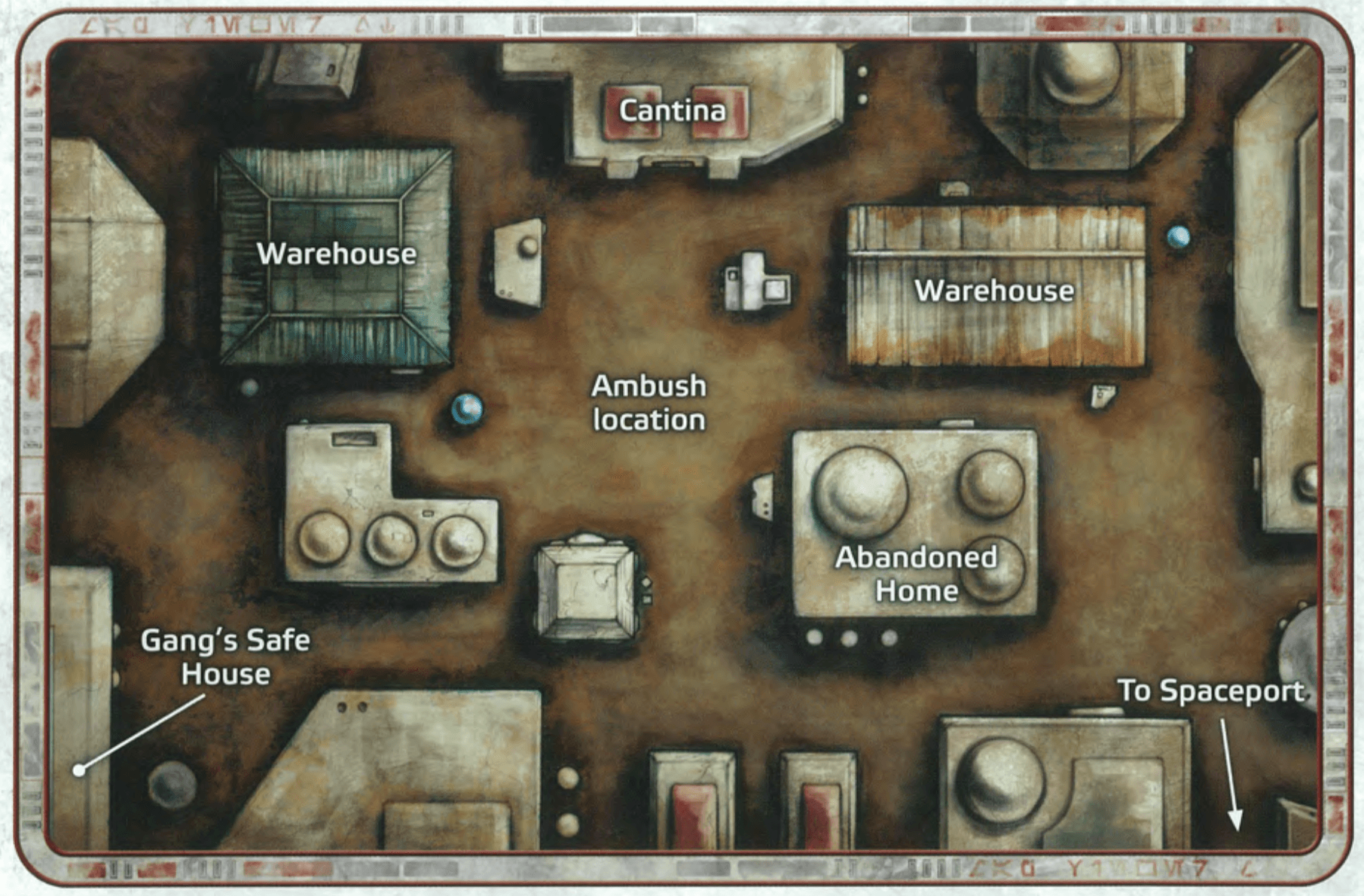 Hutt in Charge: In Trouble Brewing there are several optional encounters at the beginning of the adventure which GMs are encouraged to have the PCs encounter. The big Hutt Gangster on Formos is Bargos the Hutt of the Gorensla Hutt Kadijic. This is a good way to foreshadow the presence of the Hutt which will be a payoff later in Adventure 13 Debts to Pay. When the PCs arrive in Formos you can note that the buildings are all smaller one story buildings. Only a bar known as the Trandoshan, Bargos the Hutt’s Palace, and the Imperial Outpost are the taller buildings in the city.