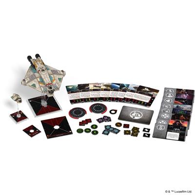 The durable VCX-100 light freighter and nimble Sheathipede-class shuttle can fight as a docked pair or split up to attack from multiple angles. When helmed by heroes like Hera Syndulla, Kanan Jarrus, and Ezra Bridger, these ships can be some of the greatest assets of the Rebellion. You'll find both a VCX-100 light freighter miniature and a Sheathipede-class shuttle miniature that can physically dock with the larger ship in this expansion, giving you the freedom to fly them separately or as a powerful combined force. Alongside these miniatures, new players will also find reprints of eight ship cards—four for the VCX-100 and four for the Sheathipede-class shuttle—as well as reprints of sixteen upgrade cards to further customize your ships. Finally, four Quick Build cards help you combine ships and and upgrades to get into the battle right away. Within this expansion, you'll find: 8 Ship Cards: 1 Chopper 1 Hera Syndulla 1 Kanan Jarrus 1 Lothal Rebel 1 AP-5 1 Ezra Bridger 1 Fenn Rau 1 Zeb Orrelios 16 Upgrade Cards: 1 Agile Gunner 1 Chopper (Crew) 1 Chopper (Astromech) 1 Collision Detector 1 Dorsal Turret 1 Ghost 1 Hate 1 Hera Syndulla 1 Ion Torpedoes 1 Kanan Jarrus 1 Maul 1 Phantom 1 Predictive Shot 1 Squad Leader 1 Tactical Scrambler 1 Zeb Orrelios